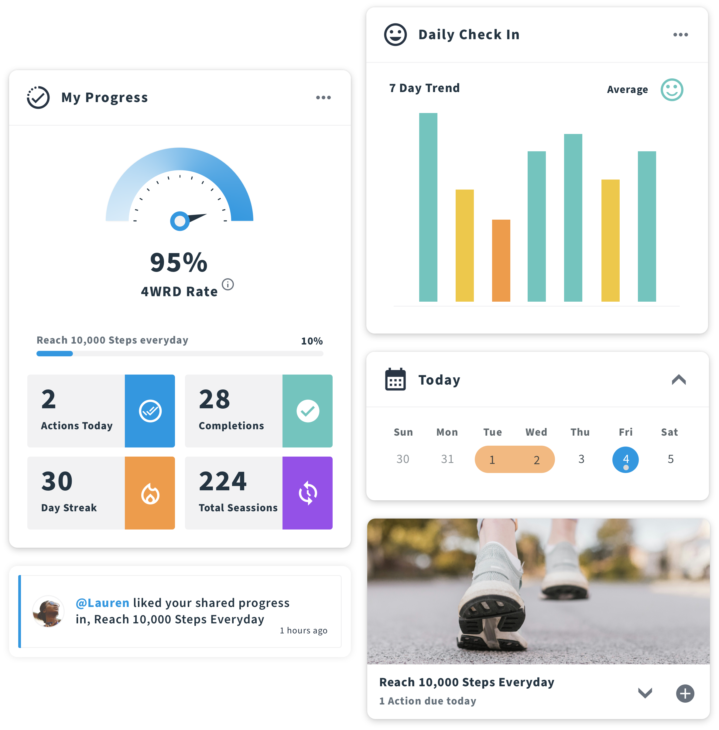 Moving yourself 4WRD starts here. Our web-based social platform connects individuals through shared interests, empowers communities to support & succeed, and helps society achieve real-life goals. Adopting goals and sharing success is just the beginning of how you can start moving 4WRD.
